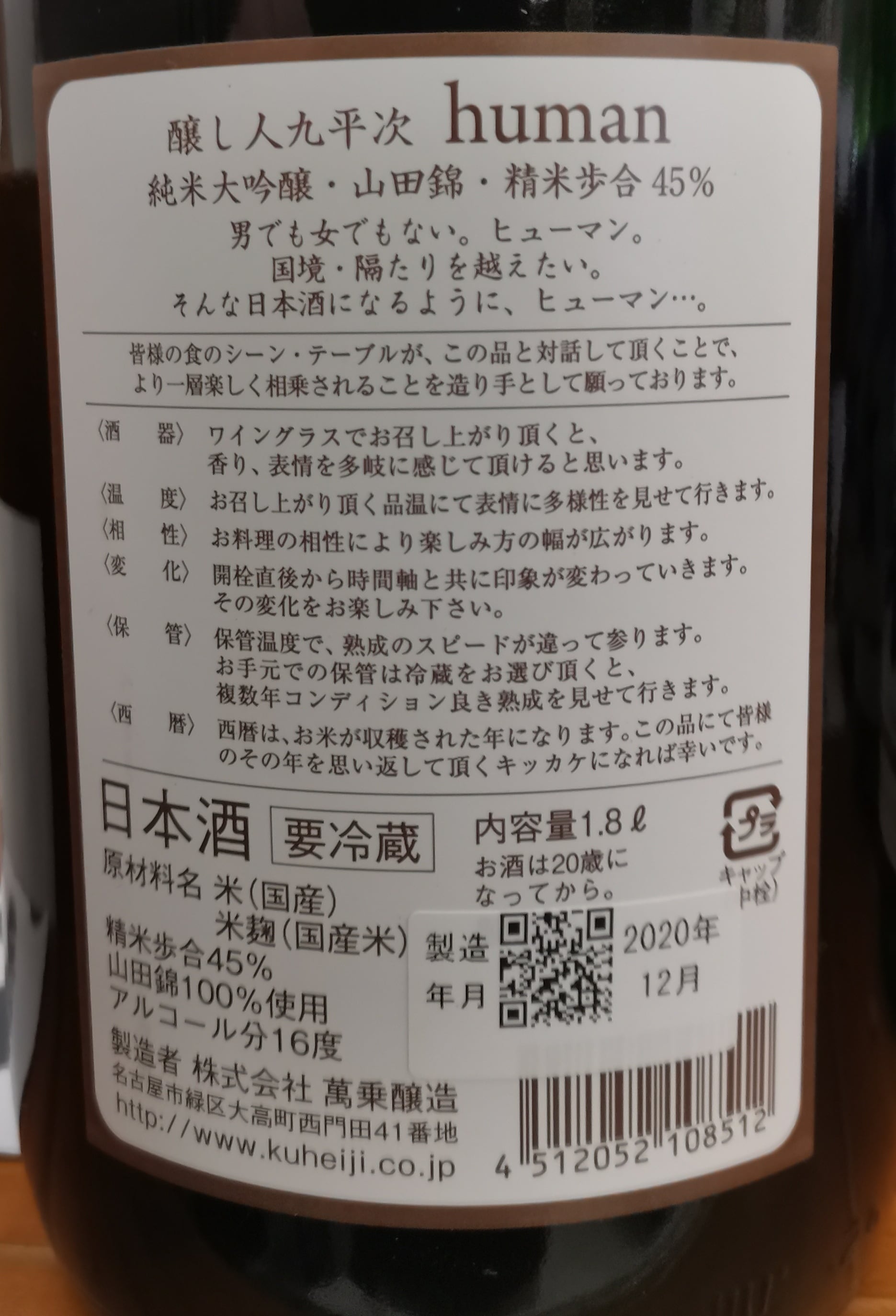 醸し人九平次 純米大吟醸【human(ヒューマン)】 720ml