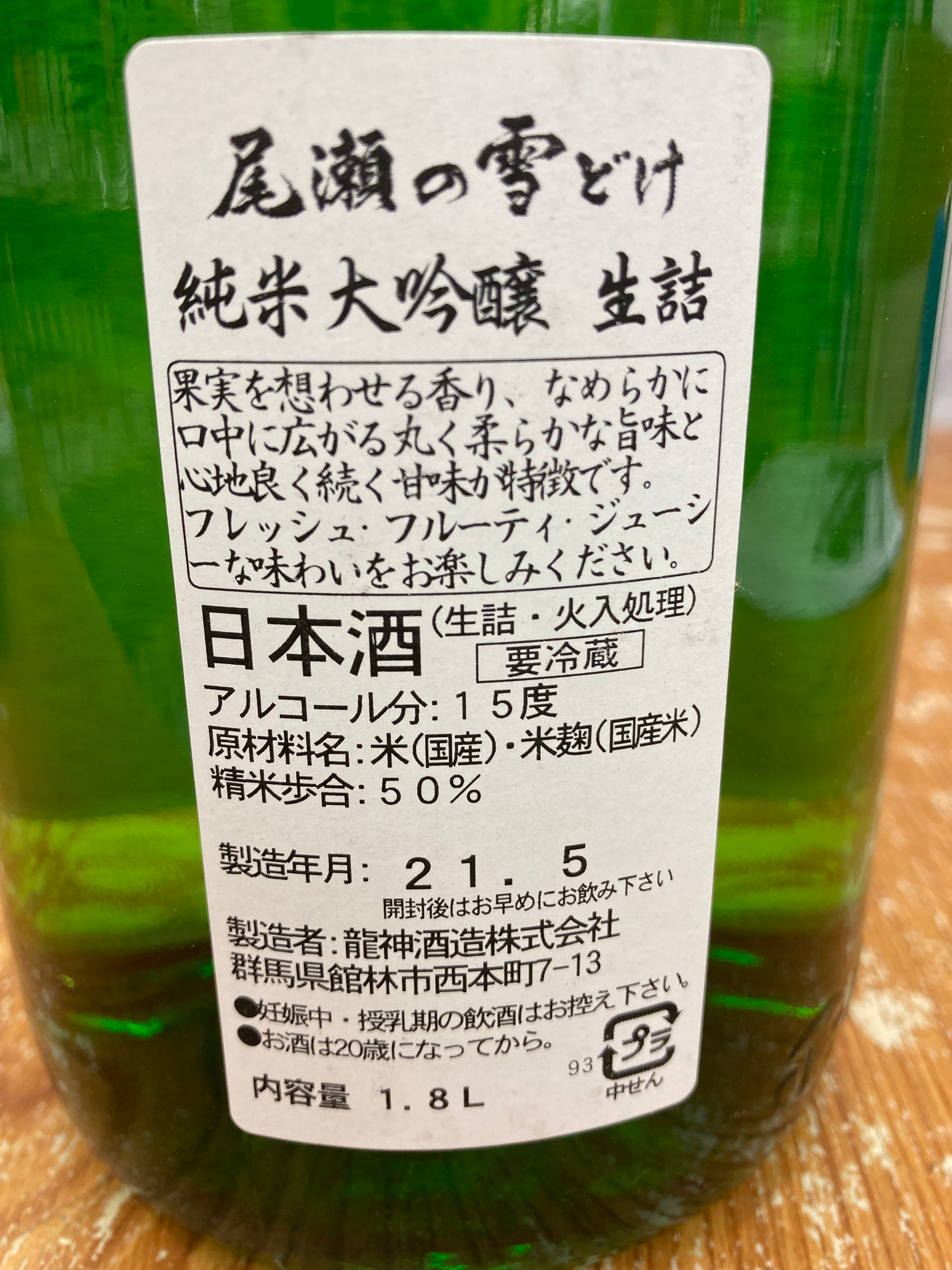 尾瀬の雪どけ 純米大吟醸 生詰 1.8L