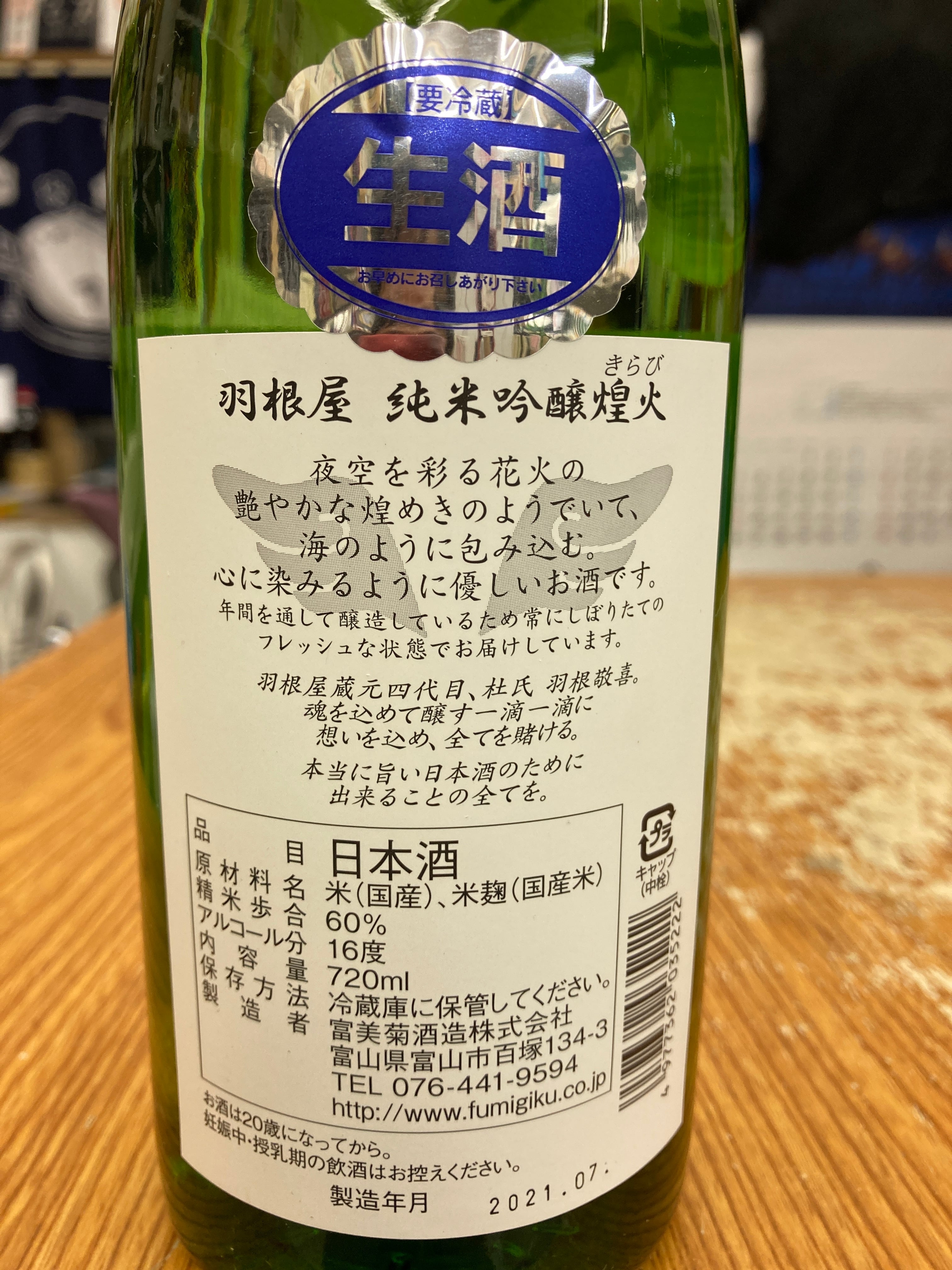 羽根屋 純米吟醸 生原酒「煌火」720ml