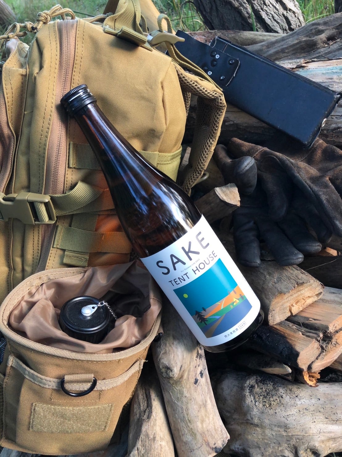 この焚火専用酒「SAKE TENT HOUSE」は、是非シェラカップに入れて直火で温めて、薫香燗酒にして呑んでいただきたい一本です。今までに味わったことのない日本酒にきっと出会えます。長い焚き火の時間をいつも以上に思い出深いものにしてくれるのは間違いありません。
